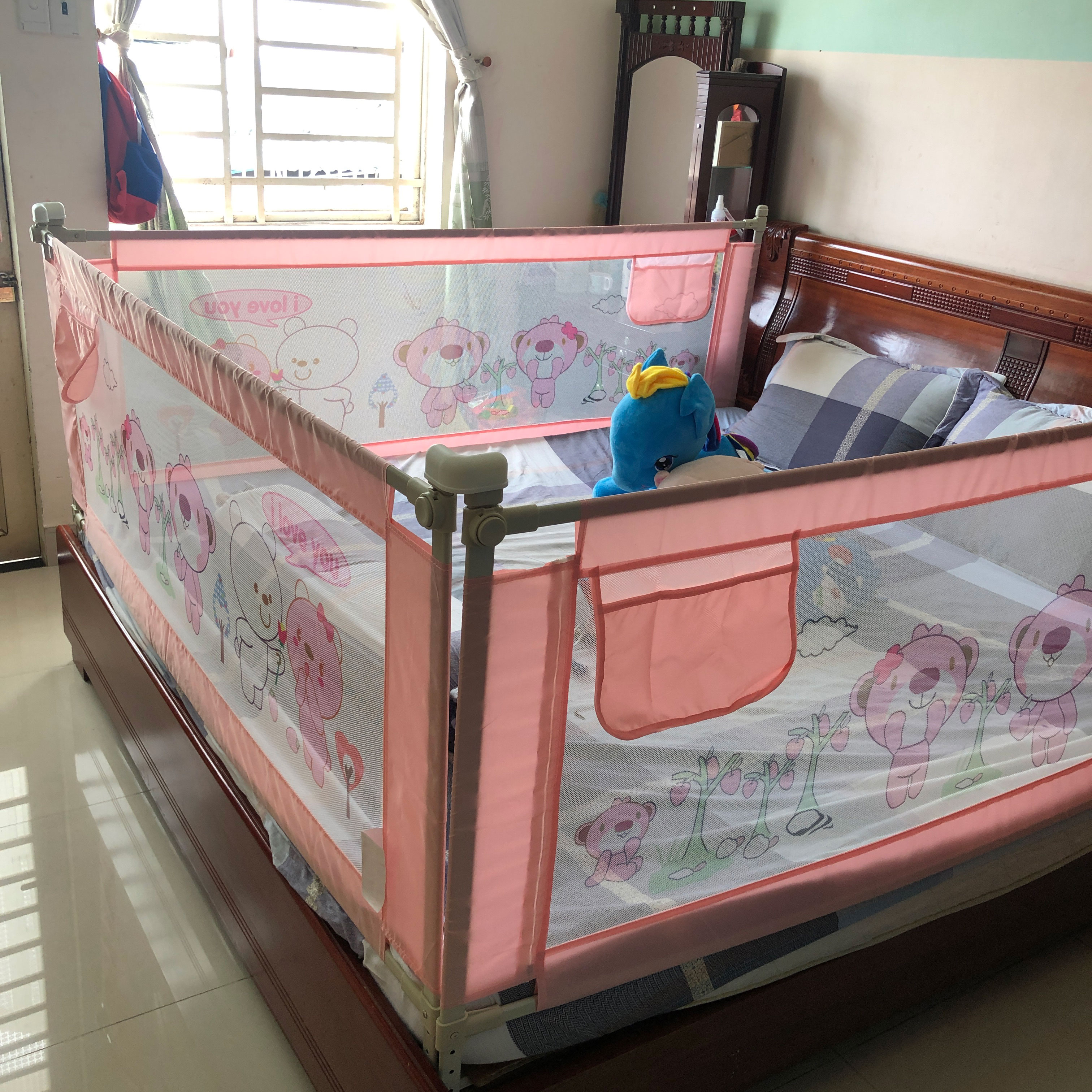 - Nếu giường 3 mặt sát tường rồi thì cần 1 thanh chắn nữa.