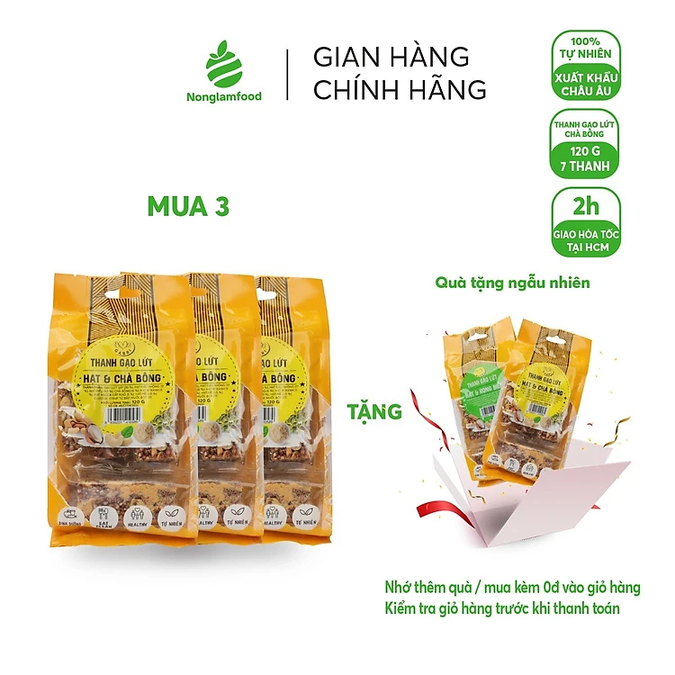 Thanh gạo lứt hạt và chà bông Gabri Nonglamfood túi 7 thanh | Hỗ trợ giảm cân, ăn kiêng lành mạnh