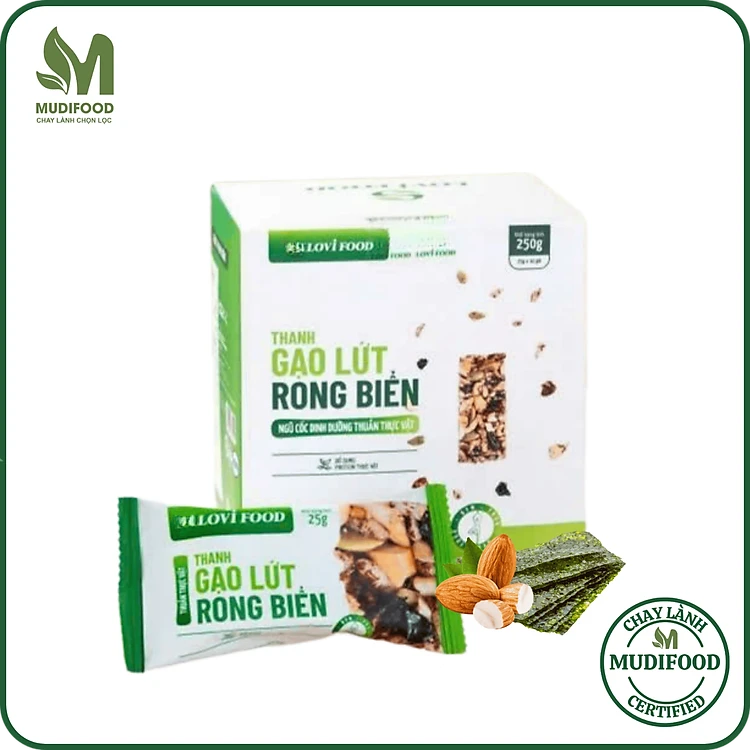 Thanh Gạo Lứt Rong Biển Lovifood 250g (10 gói x 25g) - Cung Cấp Vitamin và Khoáng Chất, Giúp Cân Đối Dinh Dưỡng, Tốt Cho Sức Khỏe, Bổ Sung Chất Đạm và Chất Xơ, Tốt Cho Tim Mạch, Huyết Áp - Người Ăn Kiêng, Ăn chay, Người Tập Gym, Yoga, Giảm Cân, Tiểu Đường