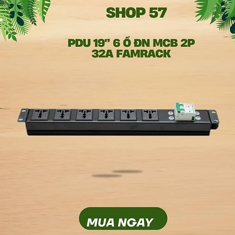 Thanh nguồn PDU 6 ổ đa năng rack 19 MCB 2P 32A: Hàng chính hãng, Phụ kiện tủ rack , PDU có MCB , PDU rack 19", thanh nguồn chuẩn rack 19"