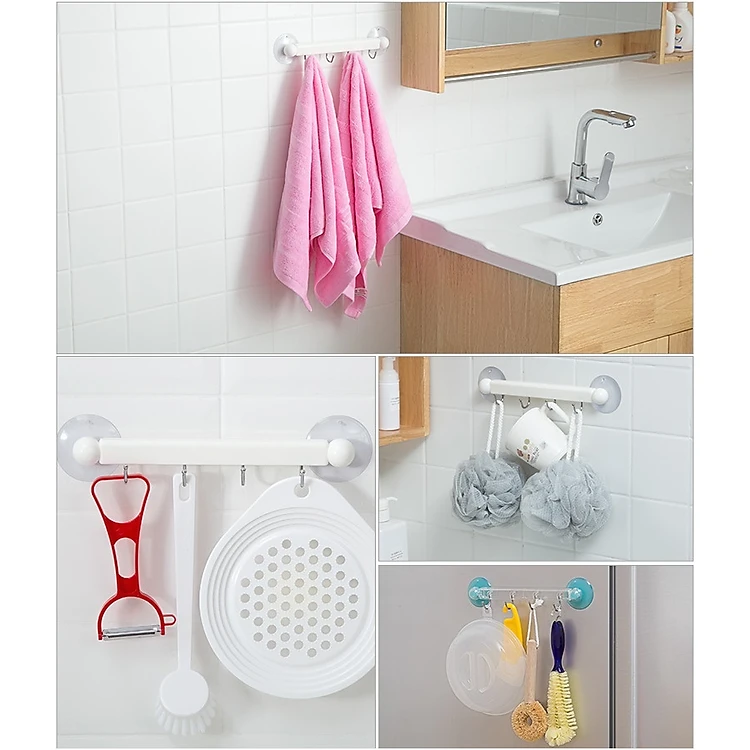 Thanh nhựa 4 móc treo đồ núm hít chân không - New - Hàng Nội Địa Nhật Bản