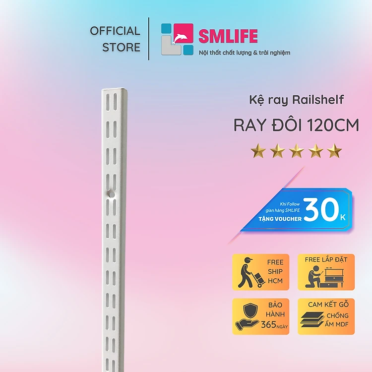 Thanh ray lỗ đôi kệ treo tường Railshelf H120cm bằng thép dày 1,4mm, sơn tĩnh điện hiện đại