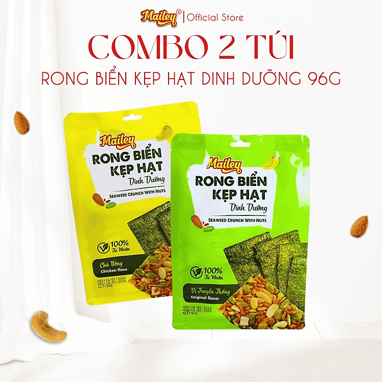 Thanh Rong Biển Kẹp Hạt Dinh Dưỡng Mix Hạt Tự Nhiên Ăn Vặt Lành Mạnh 96g | Mailey