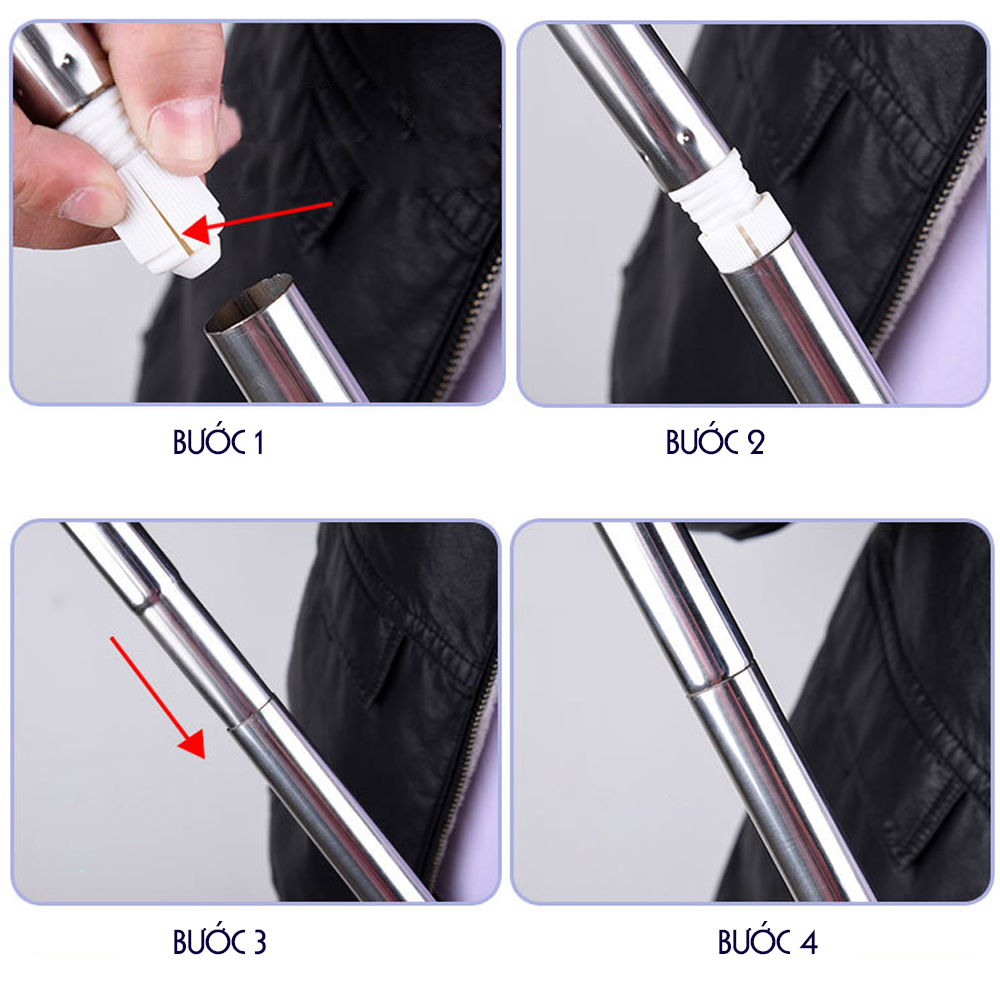 Lưu ý : Nếu kéo dài ra hết cỡ điểm tiếp xúc giữa 2 thanh gần như sẽ không còn, lúc này sẽ không sử dụng được nữa.