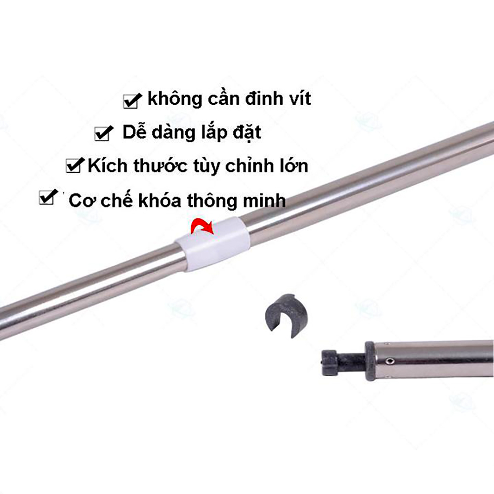 Có thanh treo đa năng, dù bạn có di chuyển tới bất cứ đâu cũng có thể dễ dàng tháo ra mang theo để sử dụng. Bạn có thể dùng để treo quần áo, các vật dụng trong nhà cũng như làm giá đỡ gác đồ vật. Đặc biệt thanh treo này rất tiện lợi cho việc treo màn cửa sổ, cửa phòng nhà bạn hay bất kì khoảng không gian nào bạn muốn che chắn.
