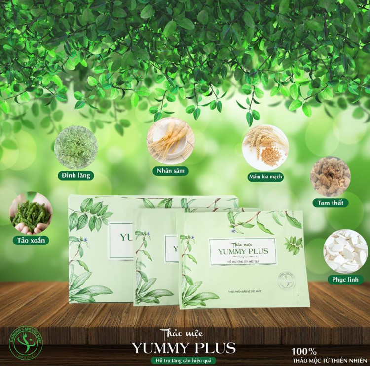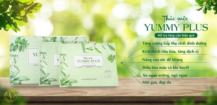 Sản phẩm thảo mộc hỗ trợ tăng cân Yummy Plus giúp ăn ngon miệng hơn, giúp hấp thụ, chuyển hóa thức ăn tốt hơn, cung cấp năng lượng và các chất dinh dưỡng giúp bạn tăng cân tự nhiên, hiệu quả và an toàn nhất.