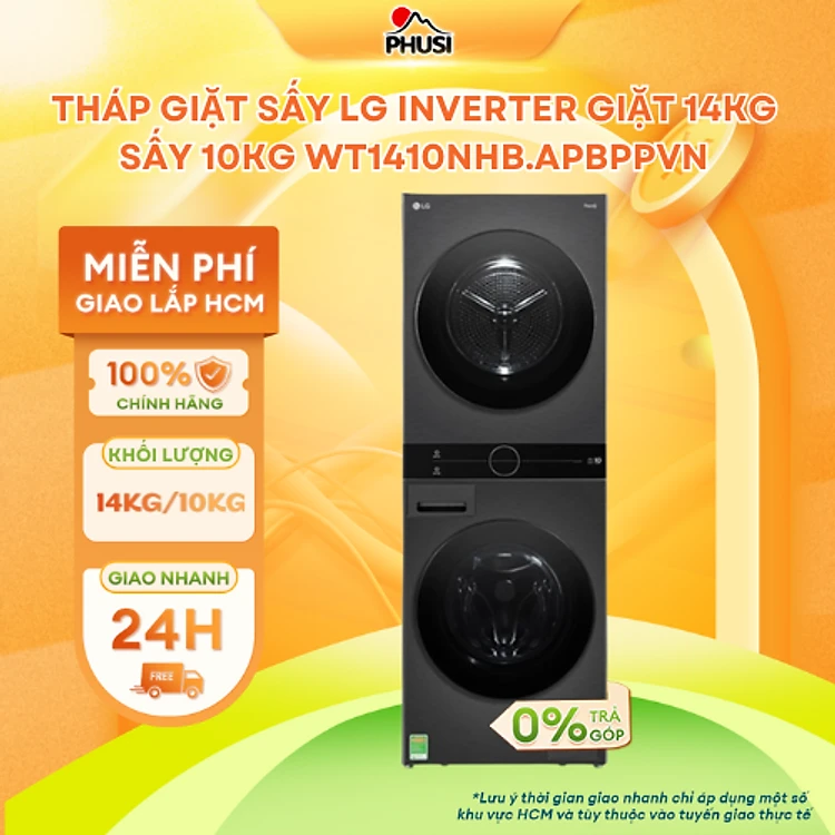 Tháp giặt sấy LG giặt 14kg sấy 10 kg WT1410NHB - Hàng Chính Hãng - Mới 100%