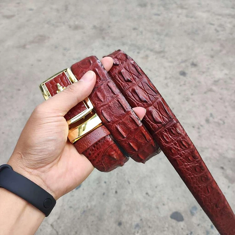 Thắt Lưng Da Cá Sấu. Gù Cá Sấu Đẹp Sang Chảnh TS119V (mặt vàng)