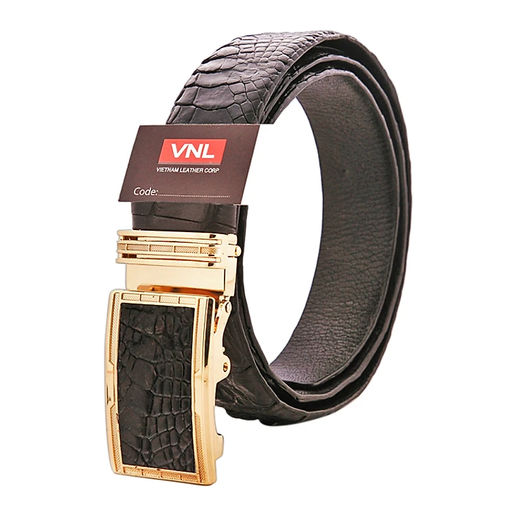 Thắt Lưng Nam Da Cá Sấu Da Thật Da Giày Việt Nam VNLDLCS0TK13D - Đen Đầu Vàng