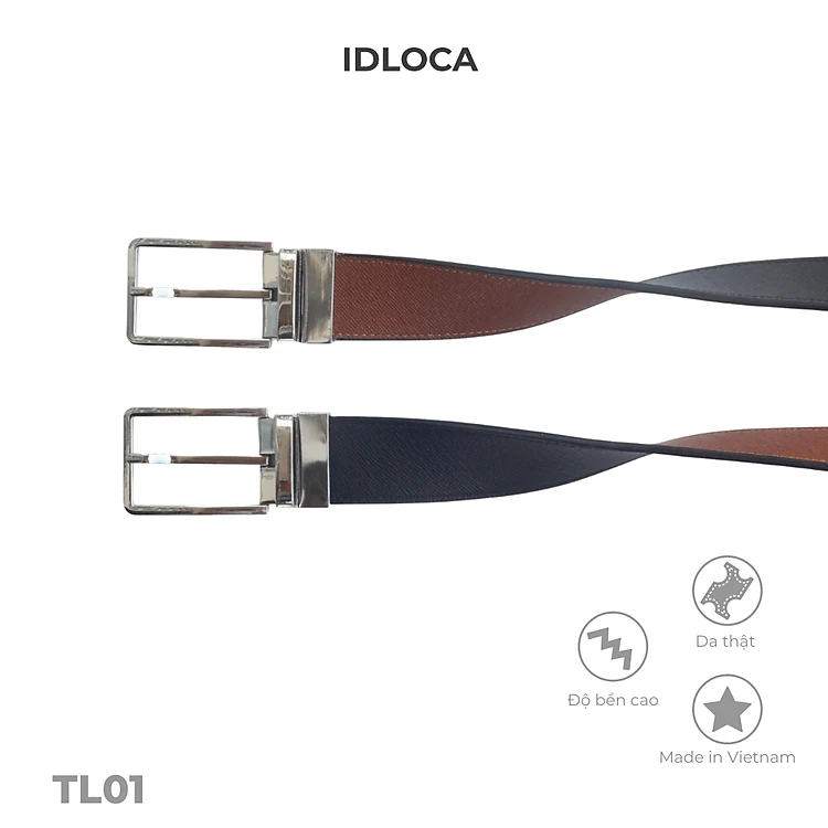 Thắt lưng nam cao cấp IDLOCA - 2 mặt da bò nâu và đen, đầu xoay hợp kim nhập khẩu (dây nịt nam)