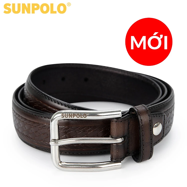 Thắt lưng nam da bò vân caro SUNPOLO BSMK47 - 3 Phiên bản màu