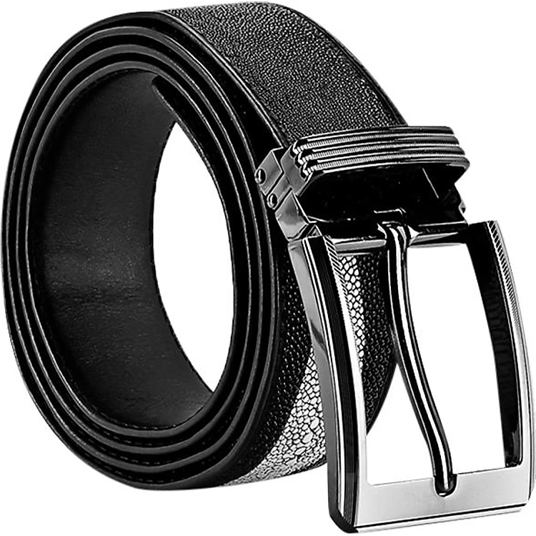 Thắt Lưng Nam Da Cá Đuối Bản Lớn Đầu Kim Huy Hoàng HT4504 - Đen