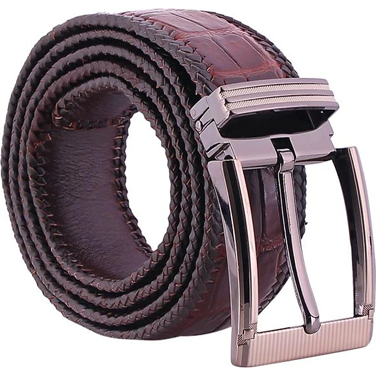 Thắt Lưng Nam Da Cá Sấu Đan Viền Bản Lớn Đầu Kim Huy Hoàng HT4295 - Nâu Đất