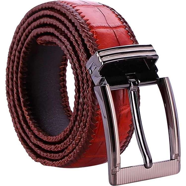 Thắt Lưng Nam Da Cá Sấu Đan Viền Bản Lớn Đầu Kim Huy Hoàng HT4296 - Nâu Đỏ