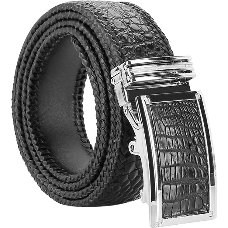Thắt Lưng Nam Da Cá Sấu Đan Viền Bản Lớn Huy Hoàng HT4288 - Đen