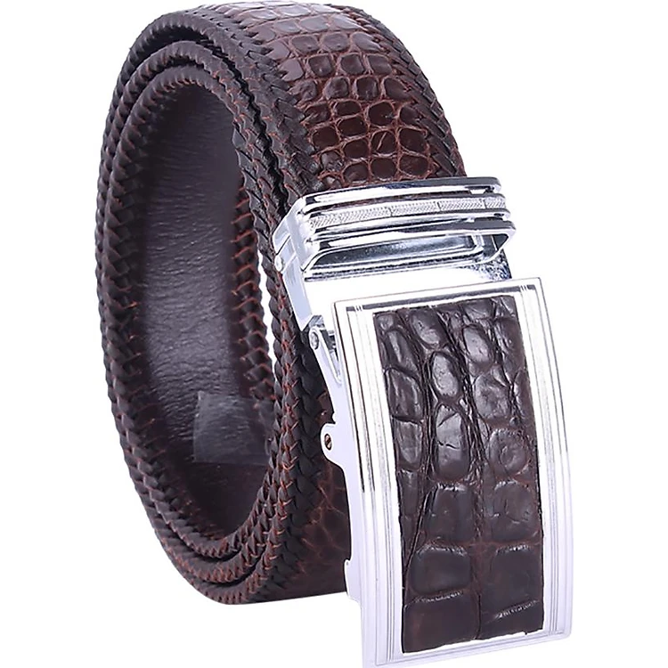 Thắt Lưng Nam Da Cá Sấu Đan Viền Bản Lớn Huy Hoàng HT4289 - Nâu Đất