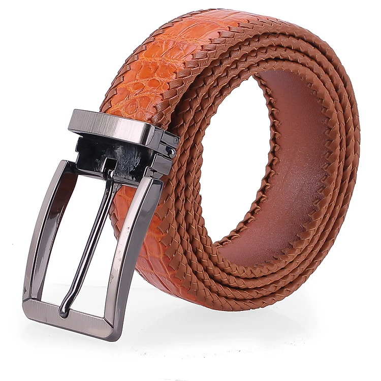 Thắt Lưng Nam Da Cá Sấu Đan Viền Đầu Kim Huy Hoàng HT4279 - Vàng