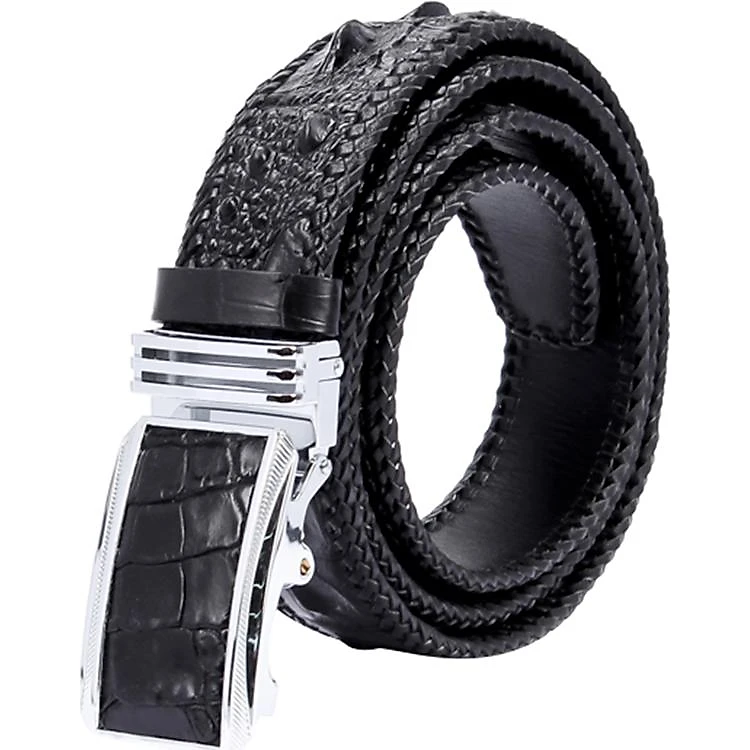 Thắt Lưng Nam Da Cá Sấu Đan Viền Huy Hoàng HT4216 (120 x 3.5 cm) - Đen