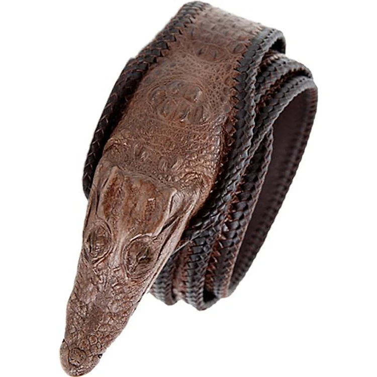 Thắt lưng nam da cá sấu Huy Hoàng nguyên con lớn đầu cá sấu màu nâu đất HT4255