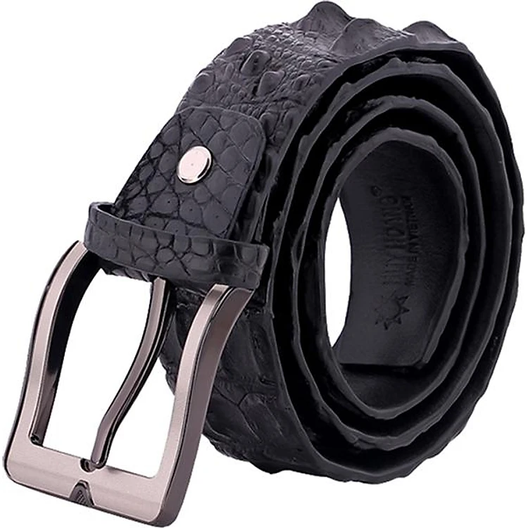 Thắt Lưng Nam Da Cá Sấu Nguyên Con Bản Lớn Bát Gài Huy Hoàng HT4222 - Đen