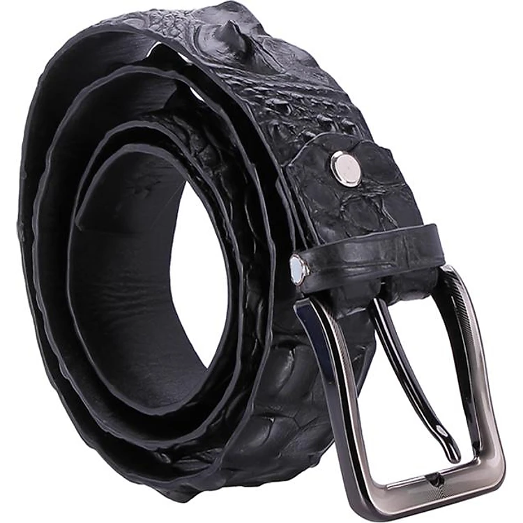 Thắt Lưng Nam Da Cá Sấu Nguyên Con Đầu Kim Bát Gài Huy Hoàng HT4762 - Đen