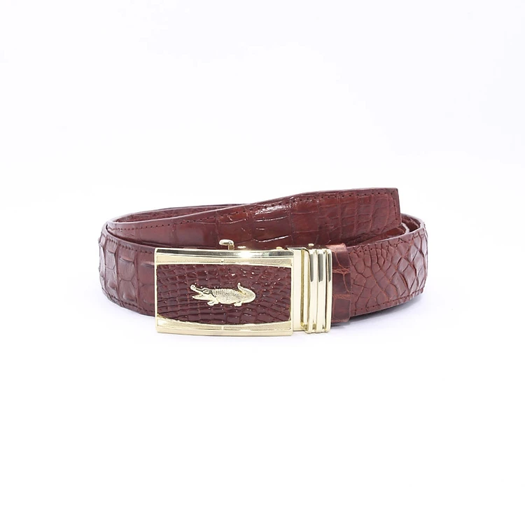 Thắt Lưng Cá Sấu Nâu Đỏ + Khoá Vàng