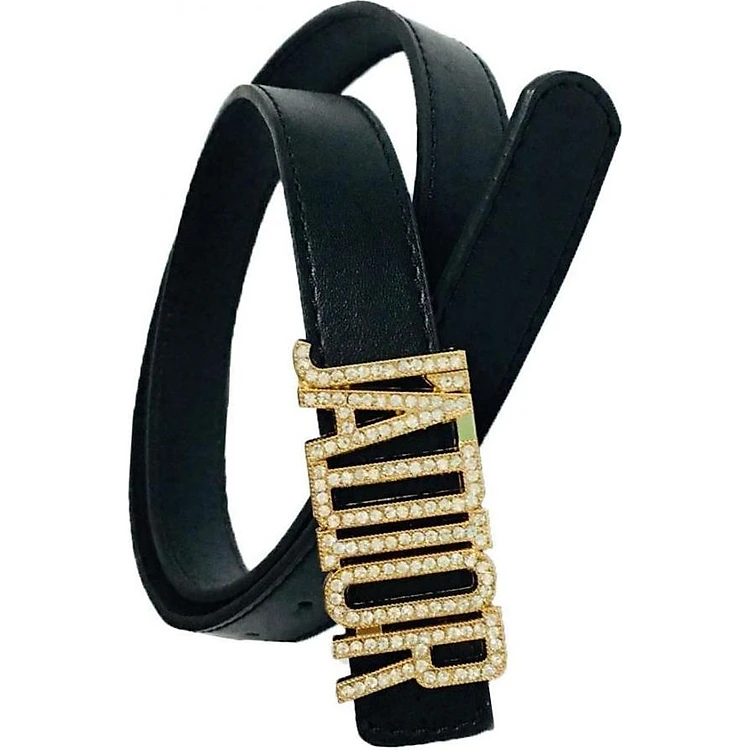 Thắt lưng nữ chất da cao cấp mặt khóa hợp kim chạm chữ thời trang đính đá sang trọng JO12 (dây đen)