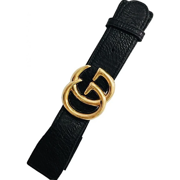 Thắt lưng nữ mặc đầm mặt chữ hợp kim mạ vàng cá tính GG06 (dây đen)