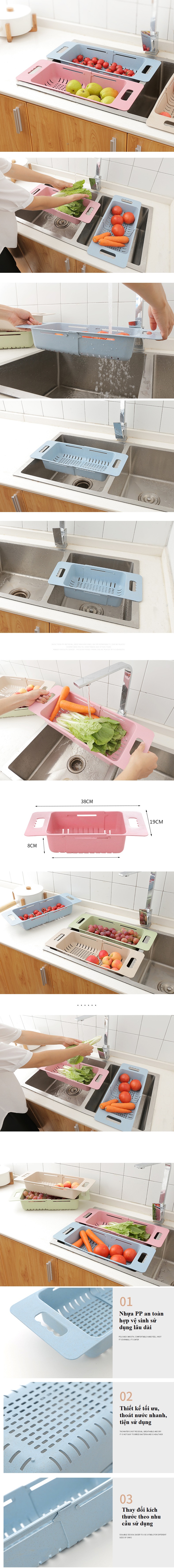 - Thiết kế thông minh dễ dàng điều chỉnh được kích cỡ để vừa vặn với chậu rửa nhà bạn, chiếc giá có thể nằm gọn gàng trên chậu rửa để úp chén dĩa, hoặc để rửa rau củ cũng rất tiện lợi.