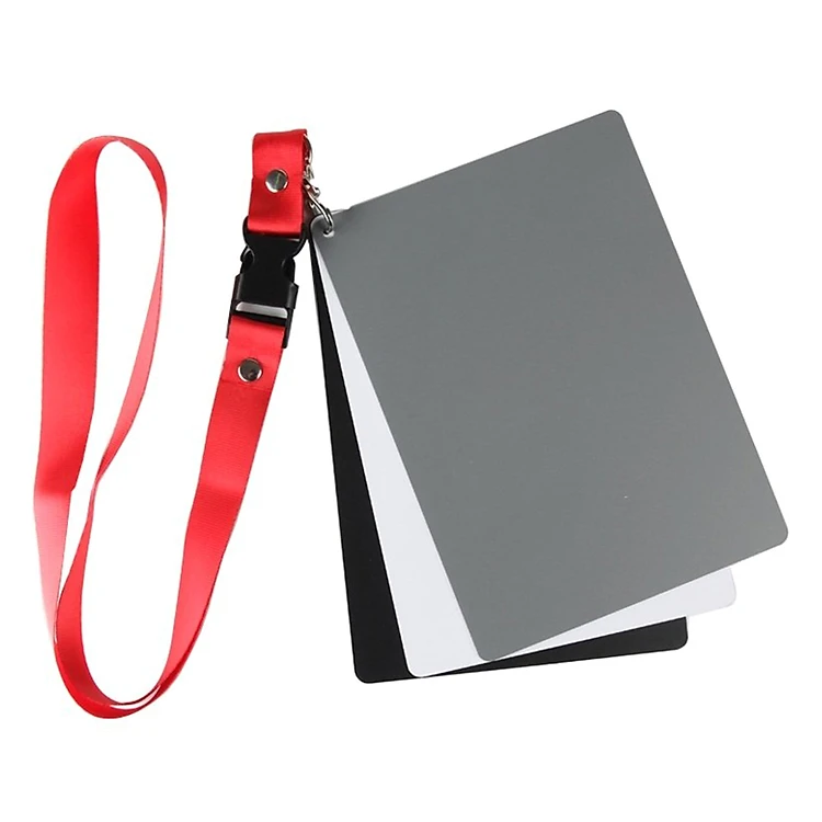 - Bộ gồm 3 thẻ màu: Xám (chuẩn 18%), đen, trắng, kích thước mỗi thẻ 5.5 x 8.5 cm nhỏ gọn, có khoá bấm quick release.