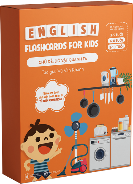 Với hình ảnh đẹp, bắt mắt cùng phiên âm chuẩn Cambridge, bộ thẻ học flashcards tiếng Anh cho trẻ em từ 6 – 10 tuổi của Wabooks với 7 chủ đề sẽ cung cấp cho các bé vốn từ vựng lên đến 210 trải đều trên các lĩnh vực lý thú với các bé. Trong đó, bộ flashcards chủ đề Đồ vật quanh ta mang đến cho trẻ bộ 30 từ vựng về các loại đồ vật thường được sử dụng trong cuộc sống hằng ngày.