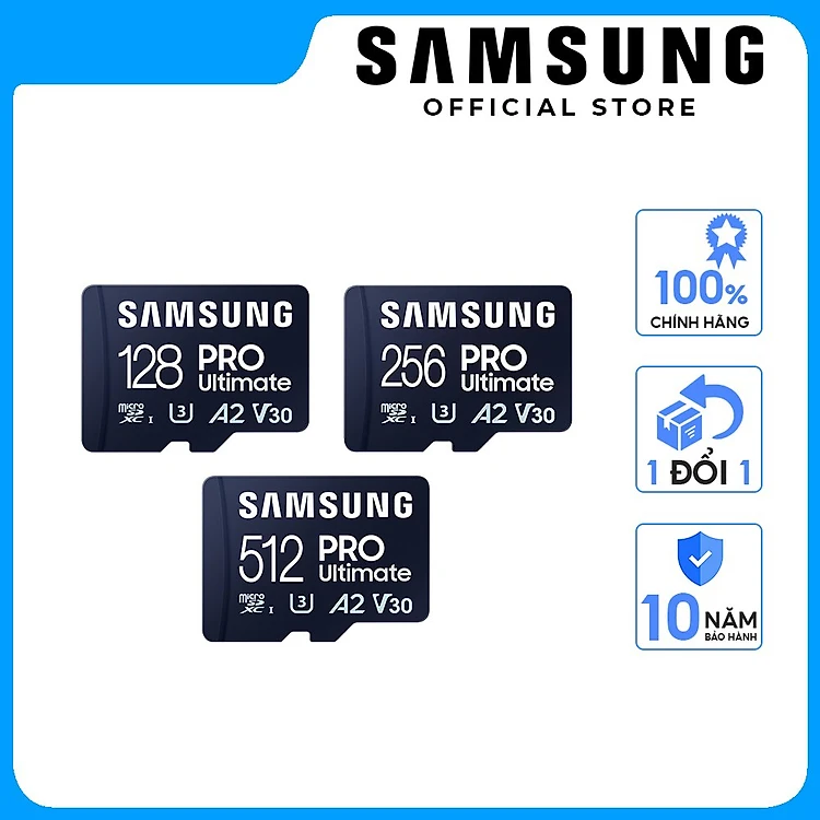 Thẻ nhớ Samsung PRO Ultimate microSDXC UHS-I; Tốc độ đọc/ghi 200MB/s - 130MB/s; tương thích mọi thiết bị Hàng chính hãng