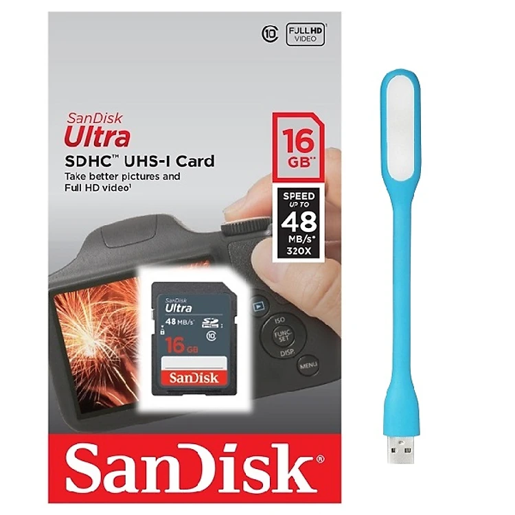 Thẻ Nhớ SD SanDisk Ultra Class 10 16GB - 48MB/s - Hàng Chính Hãng + Tặng đèn Led