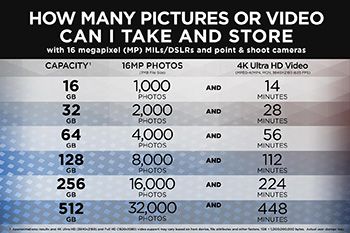 Nhiều dung lượng cho bạn lựa chọn theo nhu cầu Với dung lượng từ 8GB lên đến 512GB, thẻ nhớ SanDisk Extreme PRO SDXC UHS-I U3 cho bạn nhiều sự lựa chọn tùy thuộc vào nhu cầu của bạn. | ![]() |