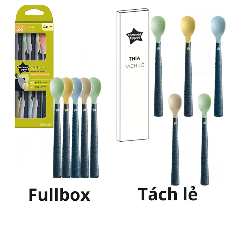 Thìa Ăn Dặm Tommee Tippee Softee, Cho Bé Từ 4 Tháng - Set 5 Thìa, Tách Lẻ (Giao Màu Ngẫu Nhiên)
