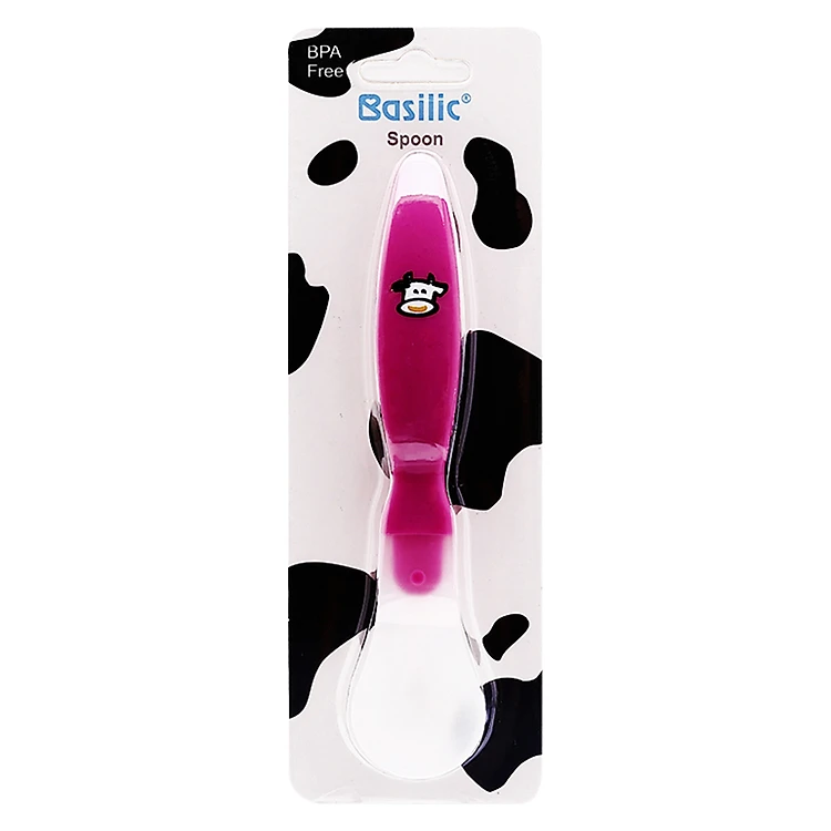- Thìa Ăn Đầu Mềm Cho Trẻ Basilic D224 sở hữu kiểu dáng nổi bật, độc đáo với hình chú bò sữa ngộ nghĩnh được in trên tay cầm kết hợp màu sắc sinh động tạo sự thu hút, hấp dẫn trẻ giúp trẻ ăn dặm dễ dàng hơn.