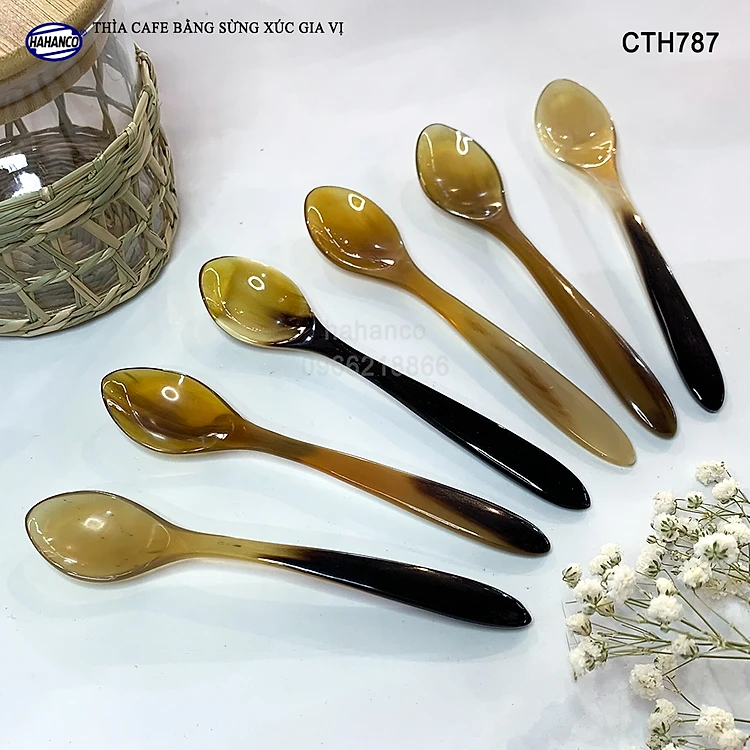 Thìa cafe xúc gia vị bằng sừng (dài 12,5cm) nhỏ gọn giúp gia vị không mất mùi - Xúc gia vị, cafe, deccor - An toàn cho sức khỏe - CTH787