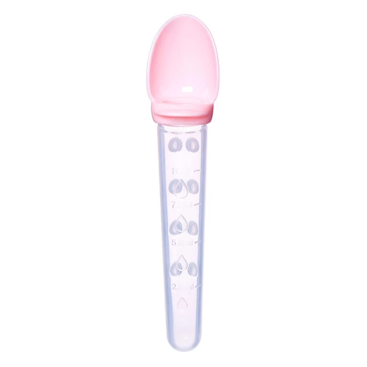 - Chiếc thìa với thiết kế màu sắc bắt mắt tạo sự thu hút của trẻ khi mẹ cho bé uống thuốc.