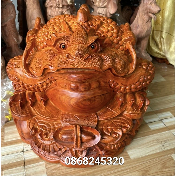 THIỀM THỪ PHONG THỦY CẦU TÀI CẦU LỘC BẰNG GỖ HƯƠNG ĐÁ KT 48×48×40CM