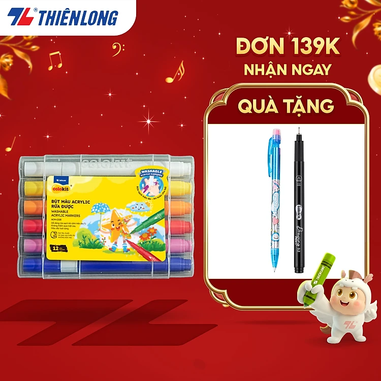 Thiên Long Washable Acrylic Markers / Bút sơn/ Bút lông 12/24/36 màu - Màu sắc tươi sáng, dễ dàng rửa sạch