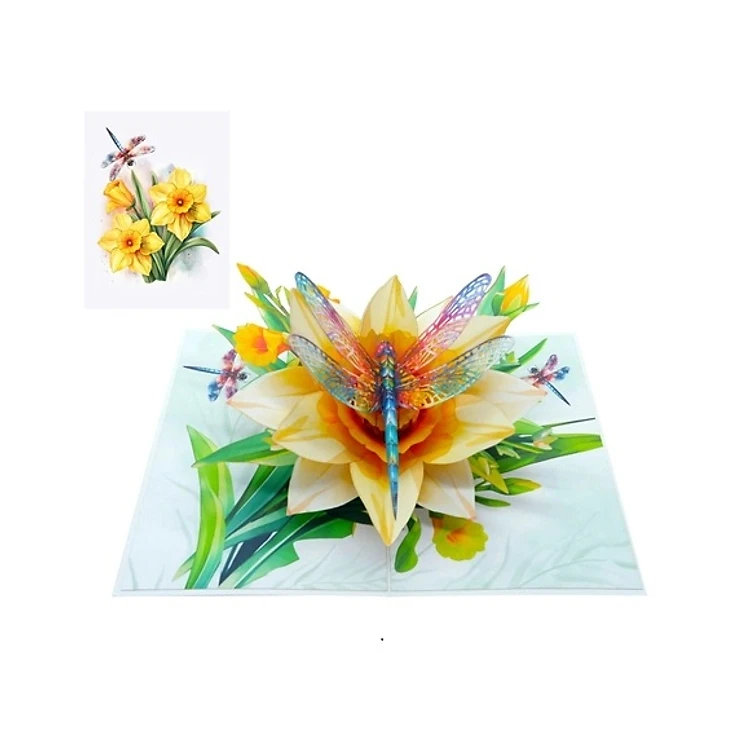Thiệp 3D Chuồn Chuồn & Hoa Thủy Tiên Vàng – Thiệp Pop Up Nghệ Thuật, Độc Đáo, Sang Trọng, F51
