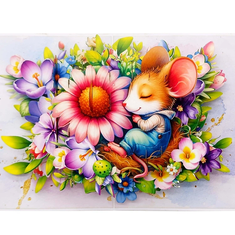 Thiệp 3D Chuột Con Ngủ Trong Vườn Hoa – Thiệp Pop Up Dễ Thương, Độc Đáo Tặng Sinh Nhật, Lễ Tình Nhân, Ngày Quốc Tế Thiếu Nhi, F59