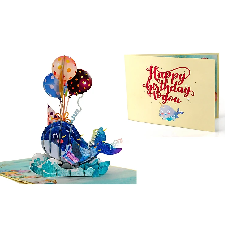 Thiệp 3D Pop Up Cá Voi & Bong Bóng Sinh Nhật – Thiệp Chúc Mừng Sinh Nhật Dễ Thương, Độc Đáo, B24