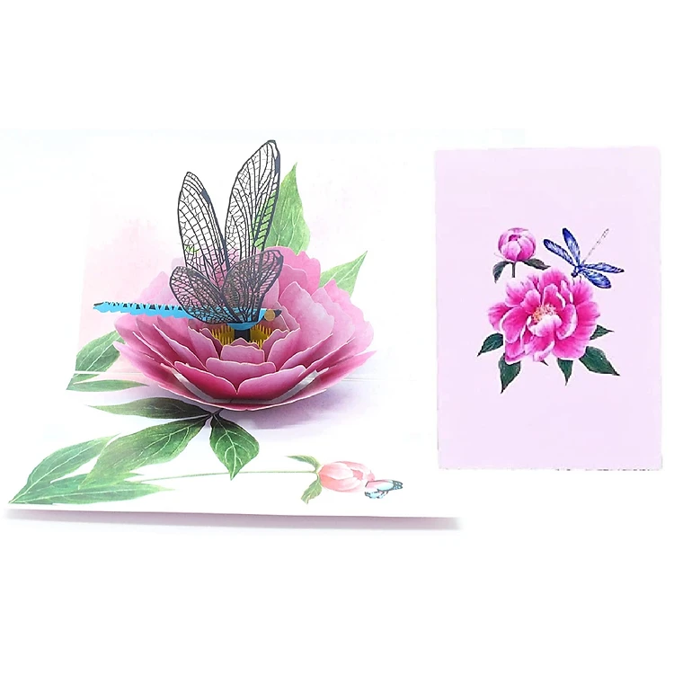 Thiệp 3D Pop Up Chuồn Chuồn & Hoa Mẫu Đơn – Thiệp Hoa Nghệ Thuật, Thiệp Chúc Mừng, Sinh Nhật, F08