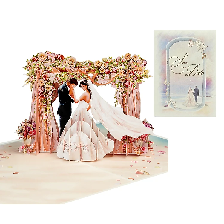 Thiệp 3D Pop Up Cổng Hoa Cưới – Thiệp Chúc Mừng Đám Cưới, Thiệp Wedding Sang Trọng, Lãng Mạn, W16