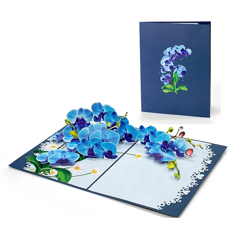 Thiệp 3D Pop Up Hoa Lan Xanh – Thiệp Hoa Nghệ Thuật, Thiệp Chúc Mừng, Sinh Nhật, Sang Trọng, F45