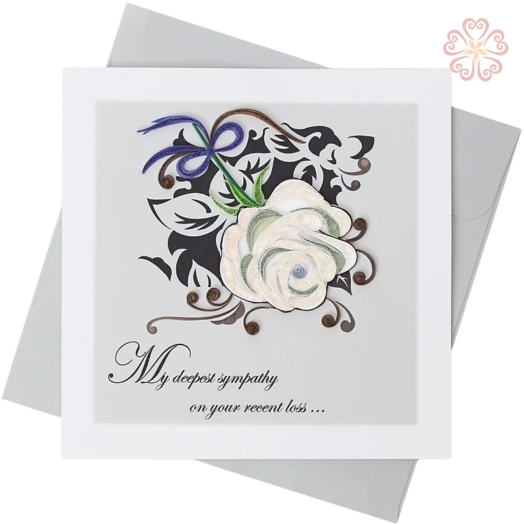 Thiệp Chia Buồn Giấy Xoắn size 15x15cm , hoa hồng trắng,
