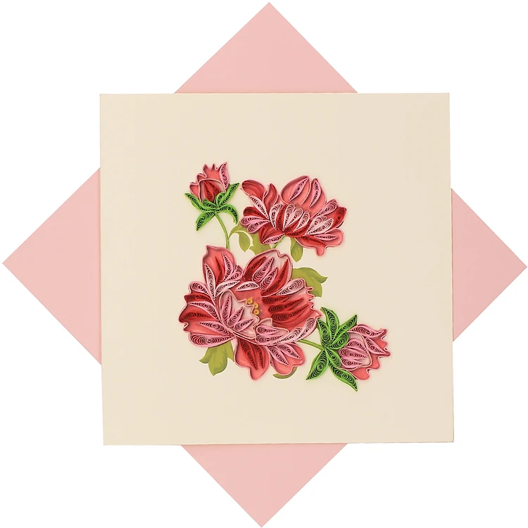 Thiệp Handmade - Thiệp Hoa mẫu đơn nghệ thuật giấy xoắn (Quilling Card) - Tặng Kèm Khung Giấy Để Bàn - Thiệp chúc mừng sinh nhật, kỷ niệm, tình yêu, cảm ơn...