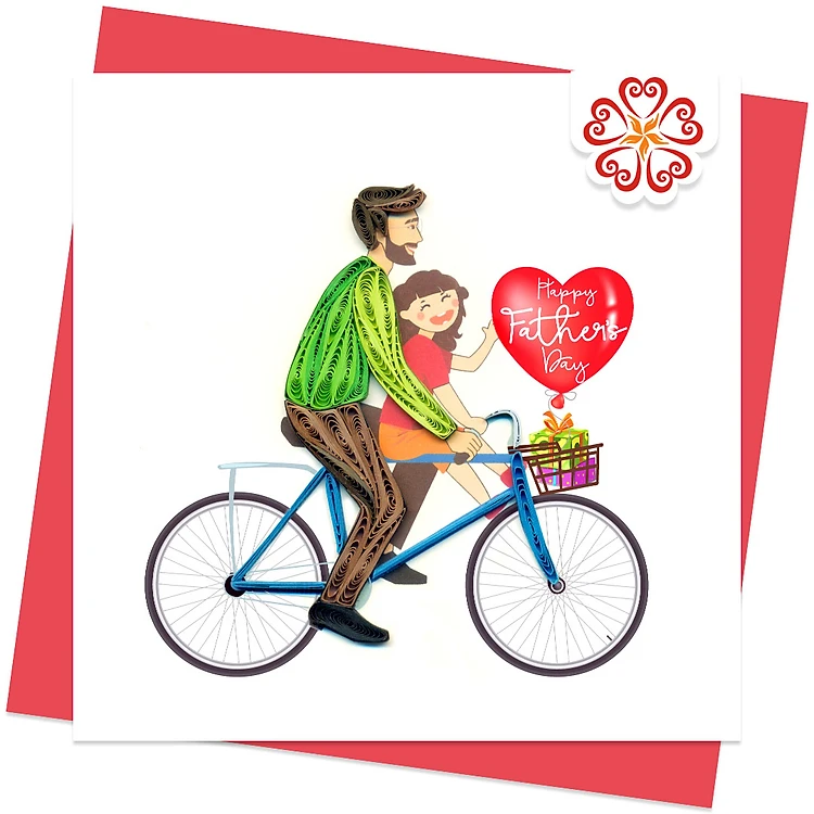 Thiệp chúc Ngày của ba, thiệp giấy xoắn 15 x 15 cm, Ba và con trên chiếc xe đạp