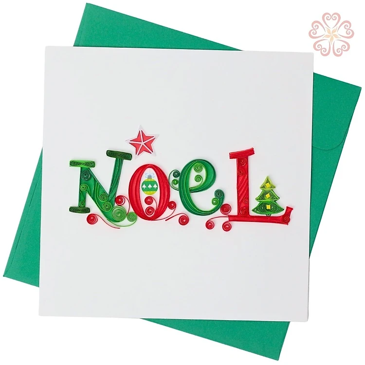 Thiệp Giáng Sinh Giấy Xoắn Vòng Hoa mừng Giáng Sinh và Năm Mới size 15x15cm